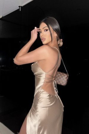 Satin Midi Dress – Champagne