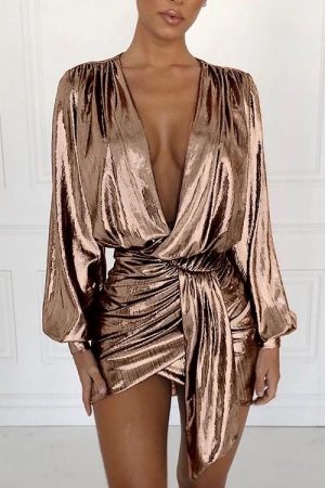 Long Sleeve Wrap Dress – Gold