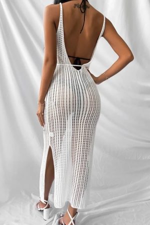 Crochet Knit Dress Cover Up – White