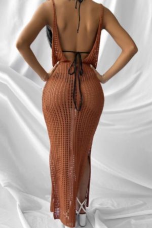 Crochet Knit Dress Cover Up – Dark Brown