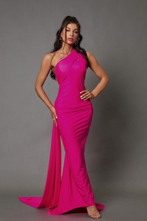 Halter Drape Backless Hoop Gown – Pink