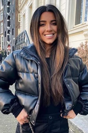 Faux Leather Puffer Jacket – Black