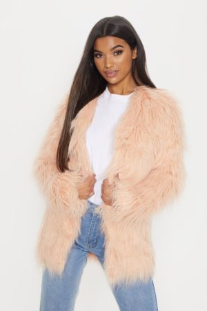 JACKETShaggy Faux Fur Jacket – Rose Gold