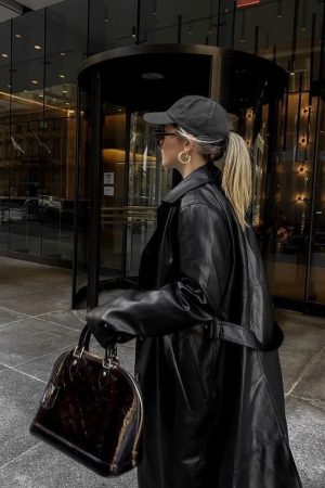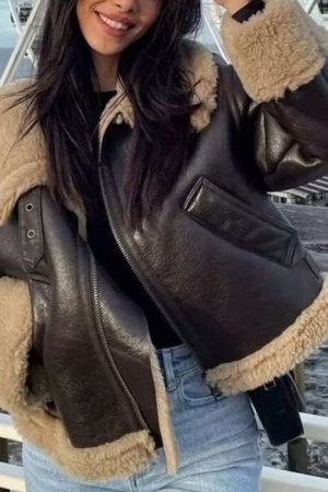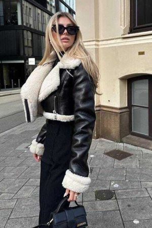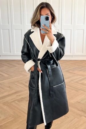 Faux Leather Sheep Skin Coat – Black