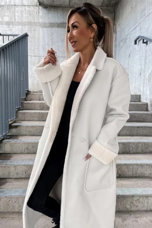 Faux Leather Sheep Skin Coat – Beige