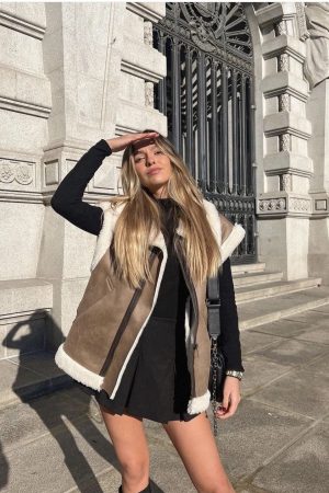 Faux Leather Waist Coat With Faux Sheepskin Inner Lining – Various