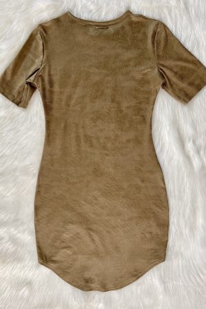 T-SHIRT CURVE DRESS – BROWN SUEDE