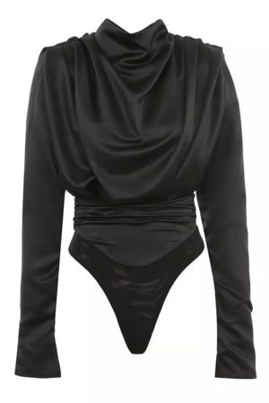DRAPED LONG SLEEVE BODYSUIT – BLACK